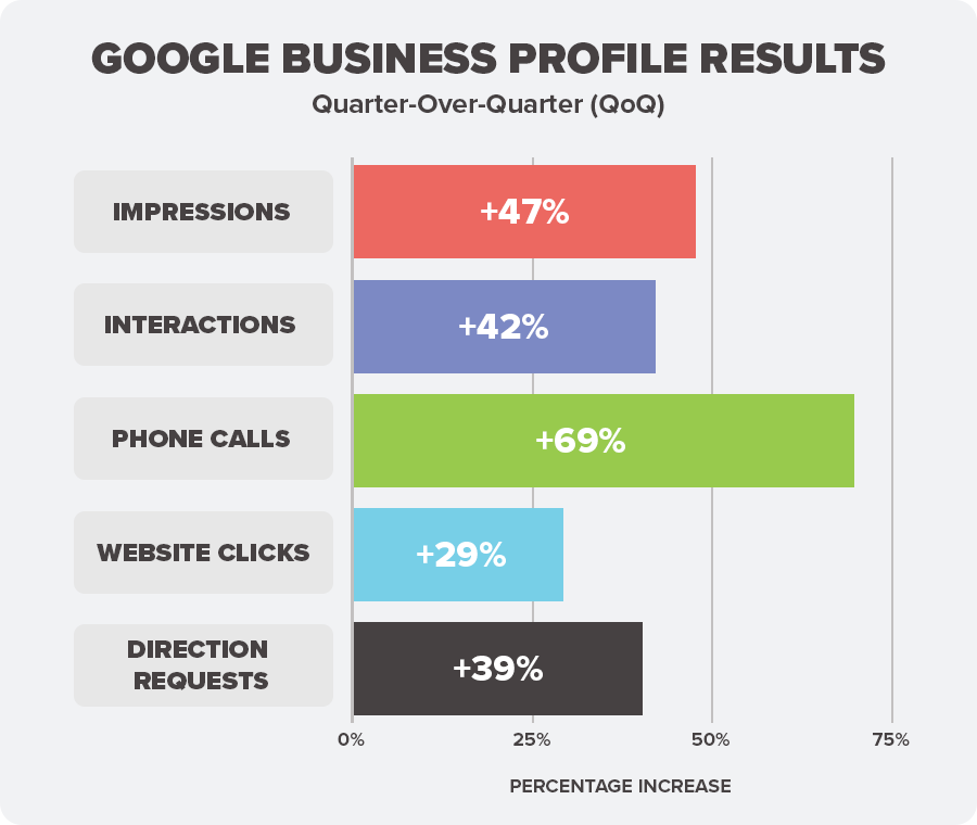 For Google Business Profile optimizations, these are the QoQ performance metrics.